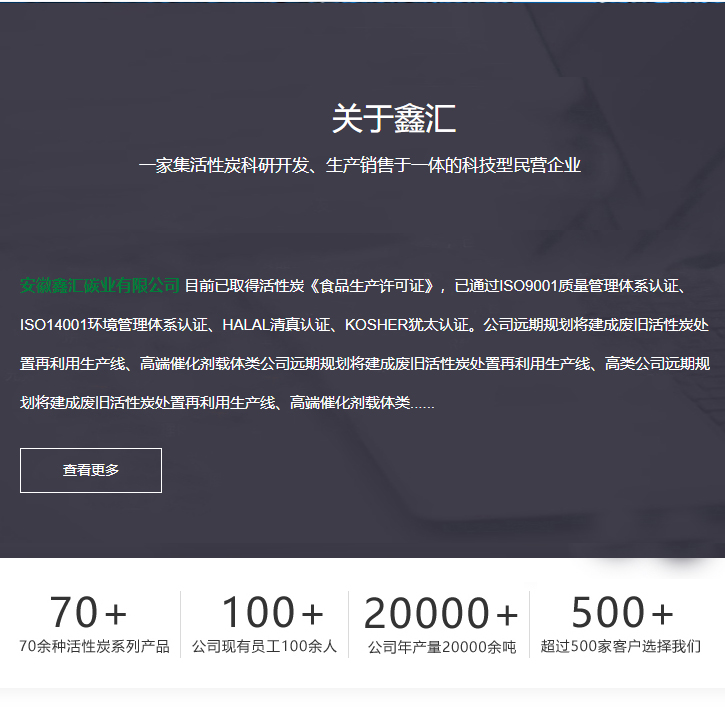 安徽鑫匯碳業(yè)有限公司 成立于2019年1月,注冊(cè)資本2180萬(wàn)元,公司位于安徽省蚌埠市五河縣小溪鎮(zhèn)工業(yè)園。公司總用地面積70000平方米,總投資額1.8億元。目前一期工程已完成,已建成高效食品級(jí)活性炭生產(chǎn)線(xiàn)一條,年產(chǎn)量12000噸;環(huán)保工業(yè)級(jí)活性炭(粉炭、顆粒)生產(chǎn)線(xiàn)2條,年產(chǎn)量12000噸。其中,食品級(jí)活性炭作為加工助劑主要用在:甜味劑、淀粉糖、氨基酸、乳酸、檸檬酸......